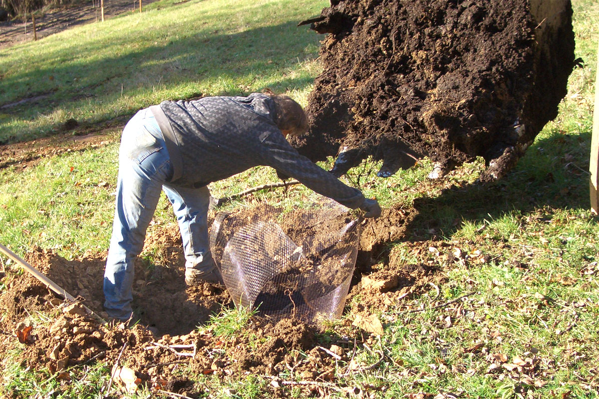 Datei:Baumpflanzung Wühlmausgitter rein.jpg